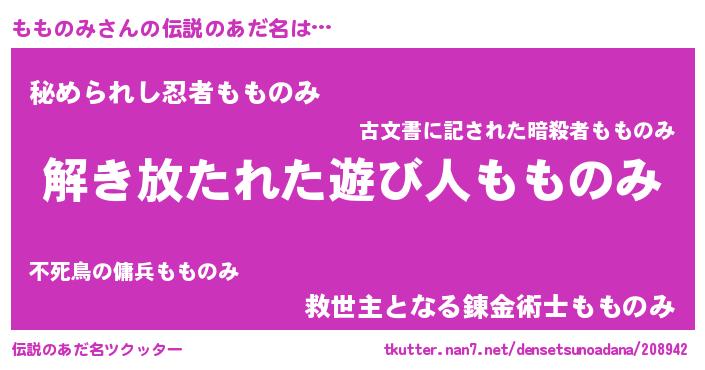 | 男性向けラノベタイトル風あだ名 | 『もものみの嫁は女の子じゃないと思った?』 |