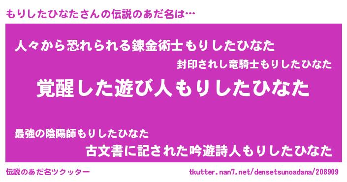 | ヒーロー風カッコイイあだ名 | 『炎刃騎士モリ』『仮面モリダー』 |