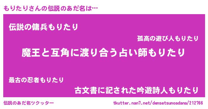 | ヒーロー風カッコイイあだ名 | 『仮面モリダー』『正義の使者もりたり』 |