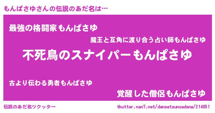 | 胡散臭い通販商品みたいなあだ名 | 『モテモテ間違いなし霊験あらたかなお札…その名も「もんぱさゆ」』 |