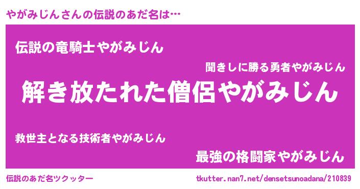 | 女子向けラノベタイトル風あだ名 | 『やがみじんアンティーク』 |