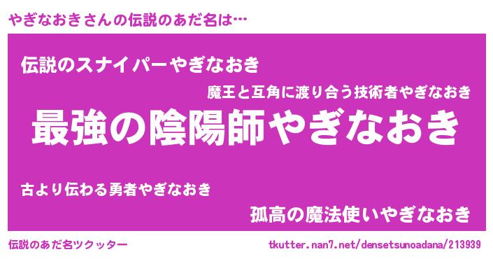 | 意味不明あだ名 | 『住所不定無職やぎなおき(98歳)』 |
