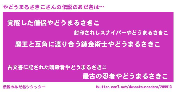 | 女子向けラノベタイトル風あだ名 | 『闇のやどうまるさきこ』 |