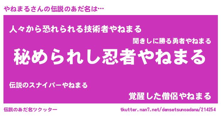 | 意味不明あだ名 | 『やねまるフォーエバー』『自称やねまる』 |