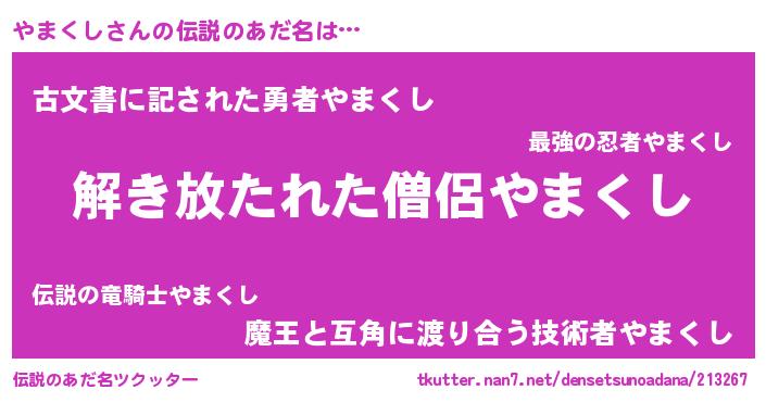 | 意味不明あだ名 | 『とにかく怪しいやまくし』 |