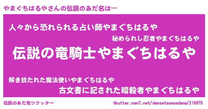 | 胡散臭い通販商品みたいなあだ名 | 『必ず成功するブレスレット…その名も「やまぐちはるや」』 |