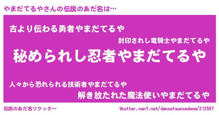 | ファンタジー風あだ名 | 『エターナルヤマダテルヤー』 |