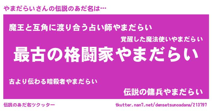 | 意味不明あだ名 | 『住所不定無職やまだらい(13歳)』 |