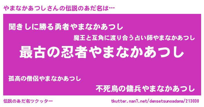 | ファンタジー風あだ名 | 『エターナルヤマナカアツシー』 |