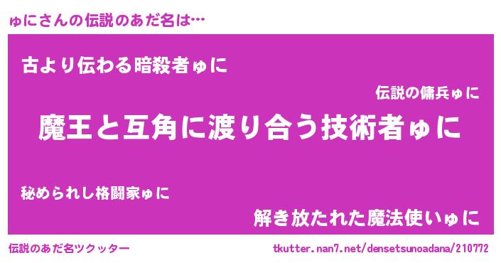 | 意味不明あだ名 | 『住所不定無職ゅに(11歳)』『自称ゅに』 |