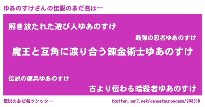 | 女子向けラノベタイトル風あだ名 | 『ゆあのすけ恋絵巻』 |