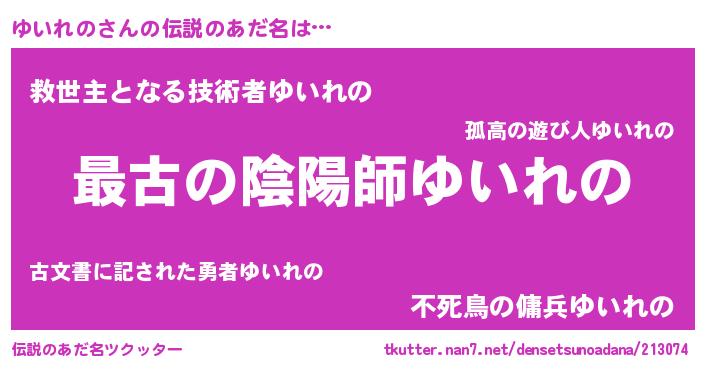 | 意味不明あだ名 | 『住所不定無職ゆいれの(71歳)』 |