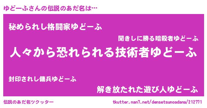 | ヒーロー風カッコイイあだ名 | 『友情の使者ゆどーふ』『暗黒騎士ユド』 |
