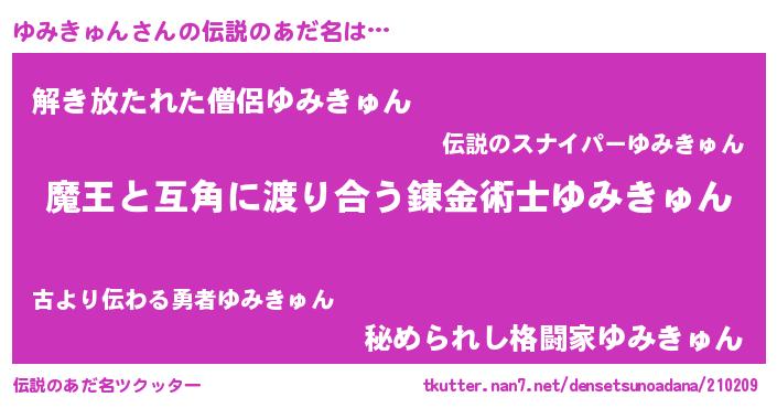 | ヒーロー風カッコイイあだ名 | 『仮面ユミダー』『友情の使者ゆみきゅん』 |