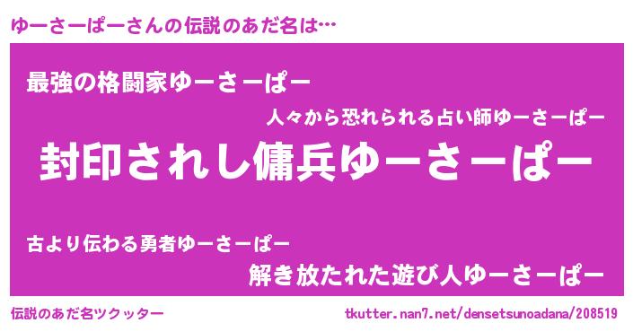 | ポケモン風あだ名 | 『ユーチュウ』『ユーサダネ』 |