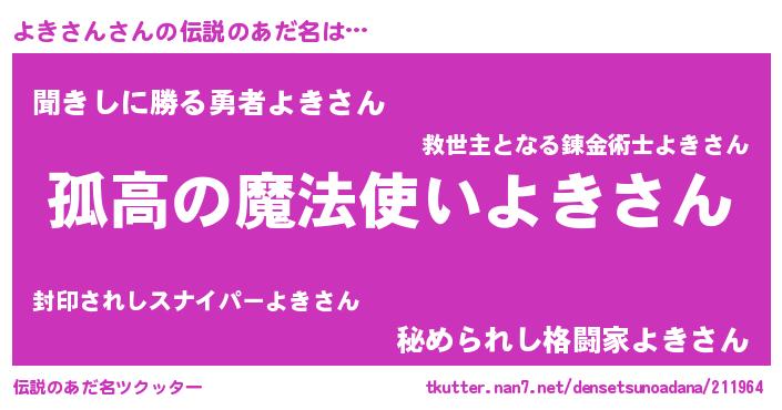 | 意味不明あだ名 | 『住所不定無職よきさん(7歳)』 |