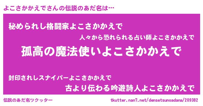 | ファンタジー風あだ名 | 『ヴァルヨコーナ』『ファントムヨコス』 |