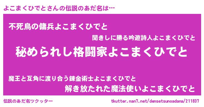 | ファンタジー風あだ名 | 『エターナルヨコマクヒデトー』 |