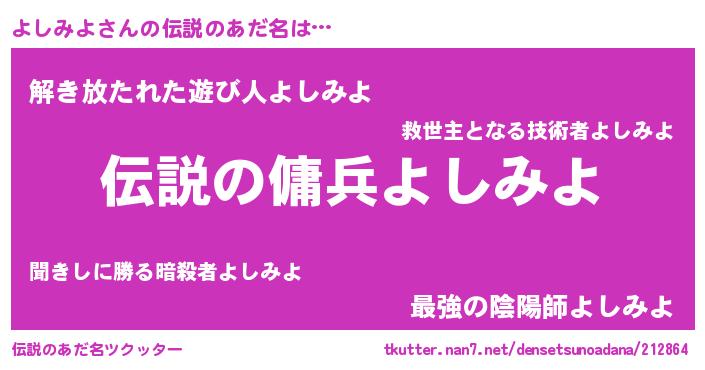 | 意味不明あだ名 | 『住所不定無職よしみよ(41歳)』 |