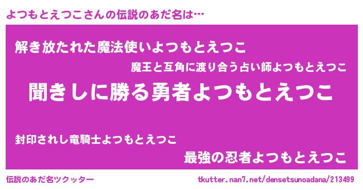 | 意味不明あだ名 | 『自称よつもとえつこ』 |