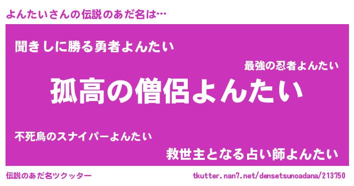 | 女子向けラノベタイトル風あだ名 | 『よんたいは平凡を望む』 |