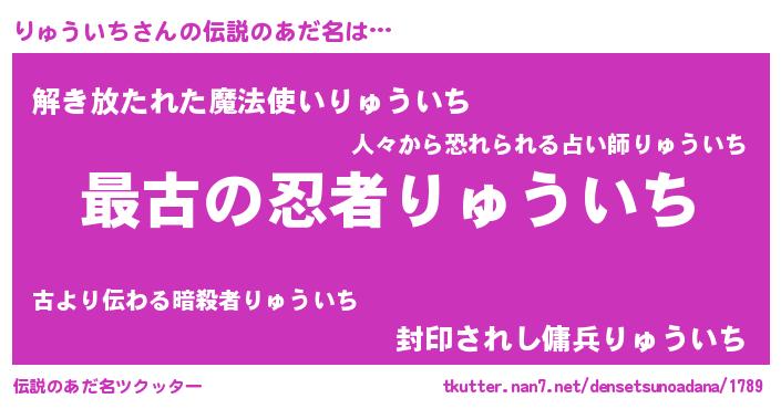 | 男性向けラノベタイトル風あだ名 | 『転生したらりゅういちだった件』 |