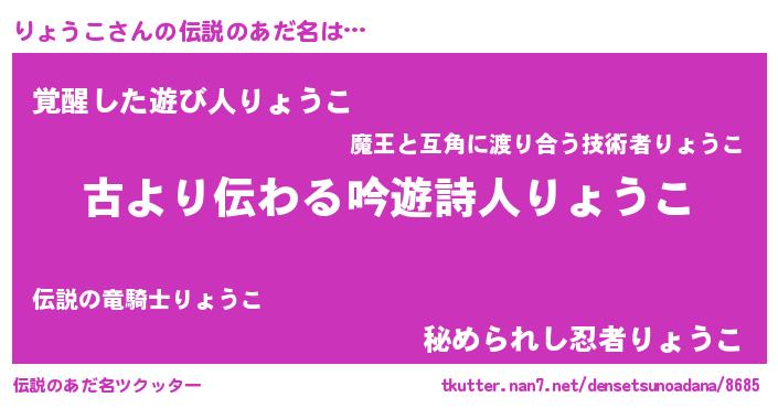| 意味不明あだ名 | 『永久保存りょうこ』『自称りょうこ』 |