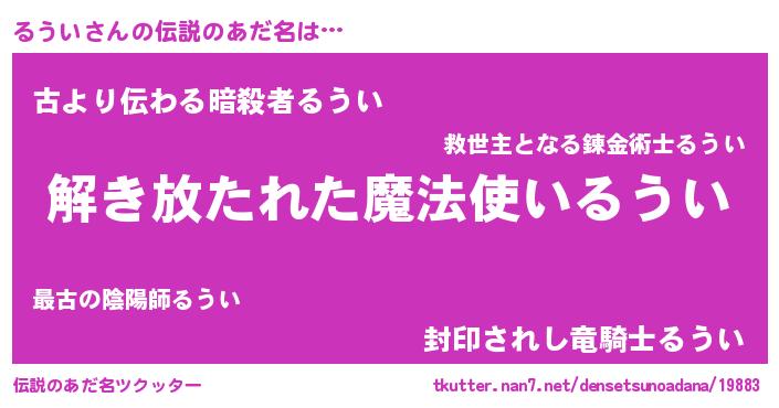 | ヒーロー風カッコイイあだ名 | 『幻影騎士ルウ』『ネオルウイ』 |