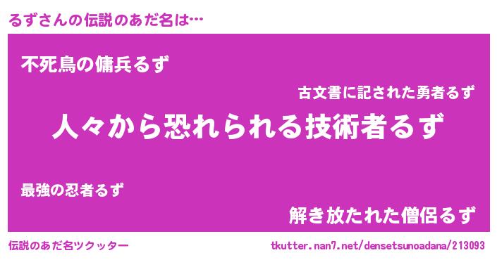 | 男性向けラノベタイトル風あだ名 | 『魔弾の王とるず』『るずの憂鬱』 |