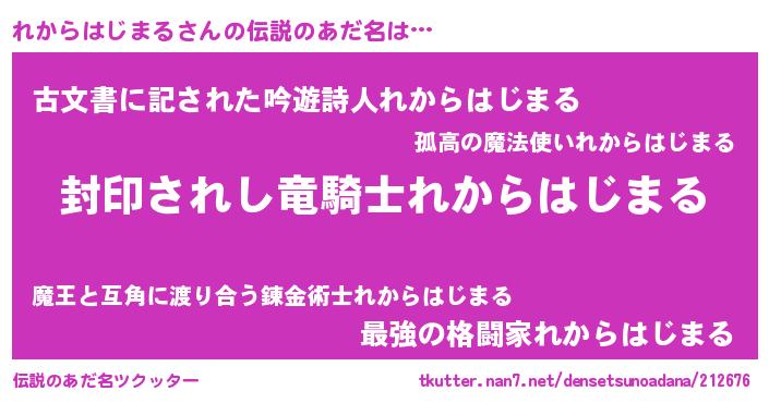 | 胡散臭い通販商品みたいなあだ名 | 『億万長者になれるブレスレット…その名も「れからはじまる」』 |