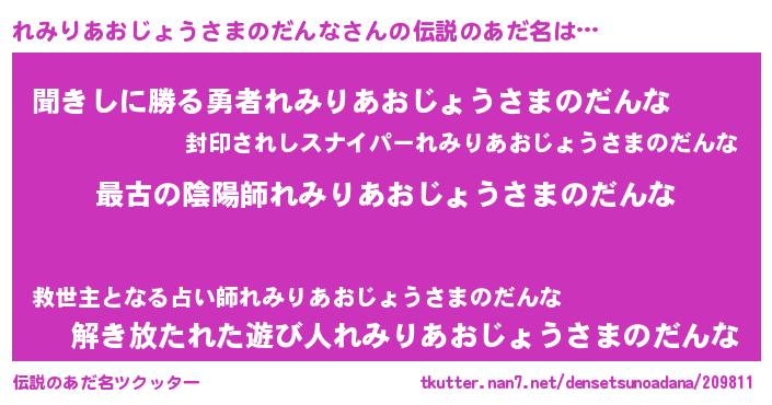 | ファンタジー風あだ名 | 『エターナルレミリアオジョウサマノダンナー』 |
