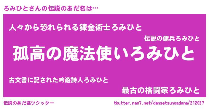 | 意味不明あだ名 | 『自称ろみひと』『ろみひとフォーエバー』 |