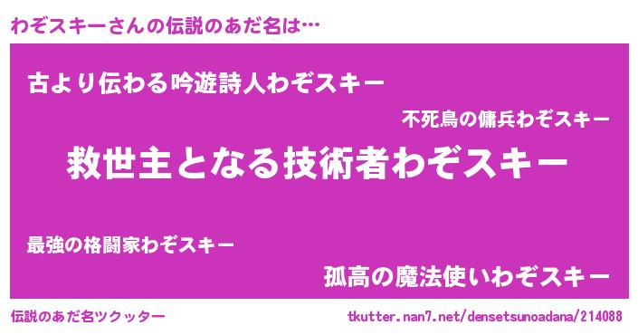 | ヒーロー風カッコイイあだ名 | 『慈愛の使者わぞスキー』『暗黒騎士ワゾ』 |