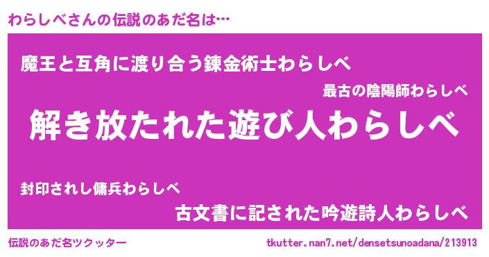 | ポケモン風あだ名 | 『ヒワラシベ』『ワラキング』 |
