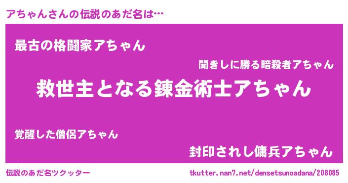 | ヒーロー風カッコイイあだ名 | 『天空の使者アちゃん』『仮面アチダー』 |