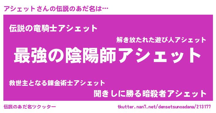 | 意味不明あだ名 | 『アシェットフォーエバー』 |