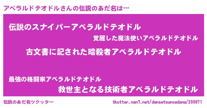 | 意味不明あだ名 | 『住所不定無職アベラルドテオドル(47歳)』 |