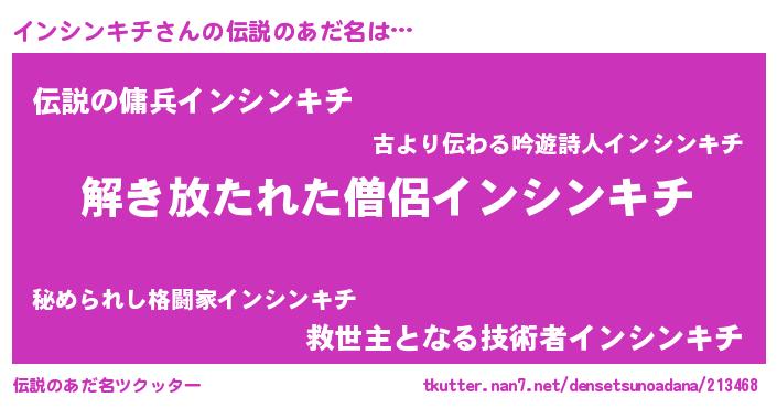 | ヒーロー風カッコイイあだ名 | 『幻影騎士イン』『スーパーインシンキチ』 |