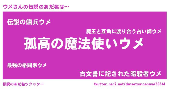 | 女子向けラノベタイトル風あだ名 | 『ウメは平凡を望む』 |