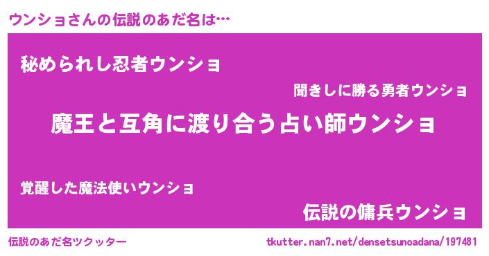 | ヒーロー風カッコイイあだ名 | 『仮面ウンダー』『正義の使者ウンショ』 |