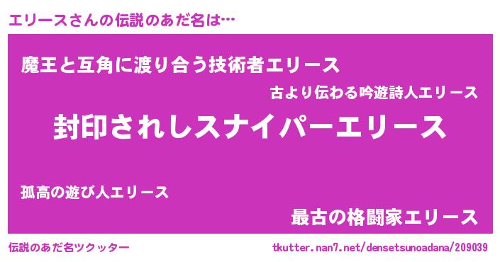 | 男性向けラノベタイトル風あだ名 | 『エリースアートオンライン』 |