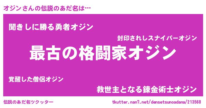 | ヒーロー風カッコイイあだ名 | 『ウルトラオジンマン』『ネオオジン』 |