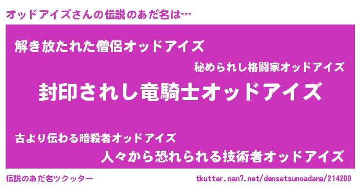 | 胡散臭い通販商品みたいなあだ名 | 『あなたにだけ特別に提供する100年もののヴィンテージワイン…その名も「オッドアイズ」』 |