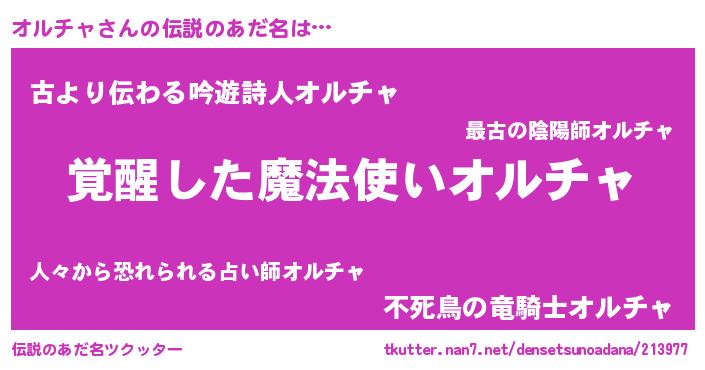 | ヘコむあだ名 | 『オルを』『オルチャ(笑)』 |