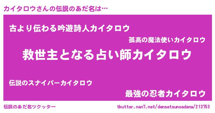 | ヘコむあだ名 | 『カイタロウ(苦笑)』『豆乳』 |