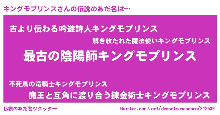 | 欧米人風あだ名 | 『キングモプリンスクリステル』 |