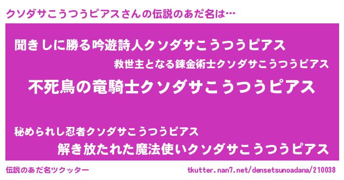 | 意味不明あだ名 | 『自称クソダサこうつうピアス』 |