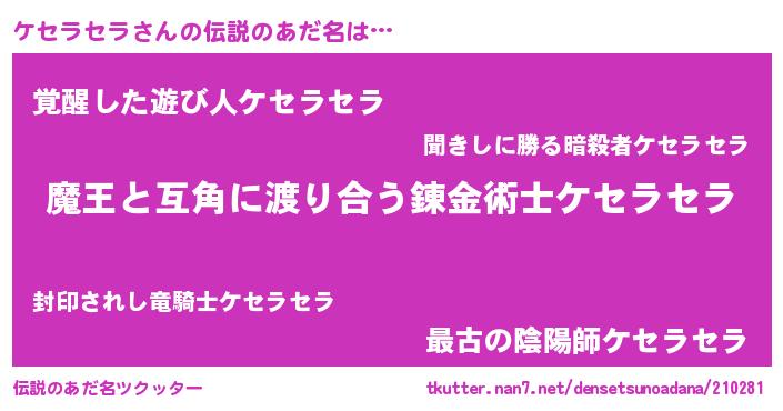 | ファンタジー風あだ名 | 『ゼケセトゥ』『カークケセラー』 |