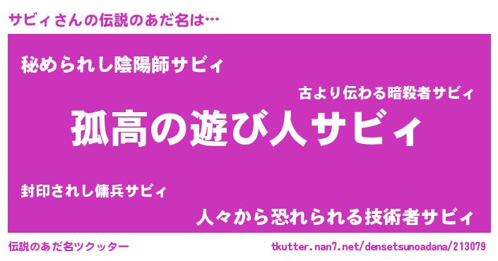 | ヒーロー風カッコイイあだ名 | 『超時空戦士サビィ』『暗黒騎士サビ』 |