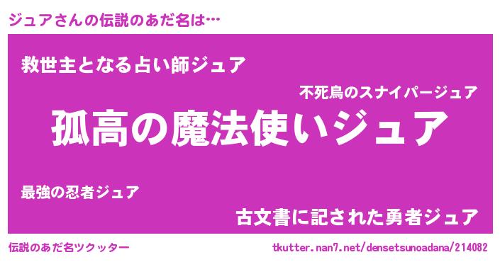 | ヒーロー風カッコイイあだ名 | 『黄金騎士ジュ』『慈愛の使者ジュア』 |